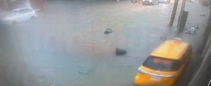 圖為臺(tái)灣高雄市路面淹水。圖片來(lái)源:臺(tái)灣“中時(shí)新聞網(wǎng)”視頻截圖