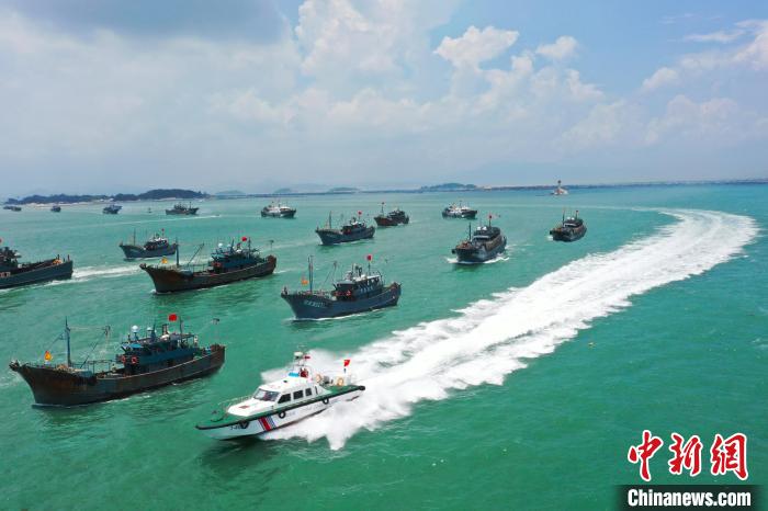 中新網(wǎng)漳州8月16日電(蔡曉曄)16日12時(shí)起,北緯26度30分以南的東海結(jié)束為期3個(gè)半月的伏季休漁期,在福建省漳州市各碼頭,眾多漁船在海警艦艇的護(hù)航下有序駛離漁港,千帆競(jìng)發(fā)奔赴不同漁區(qū)開(kāi)展捕撈作業(yè)。