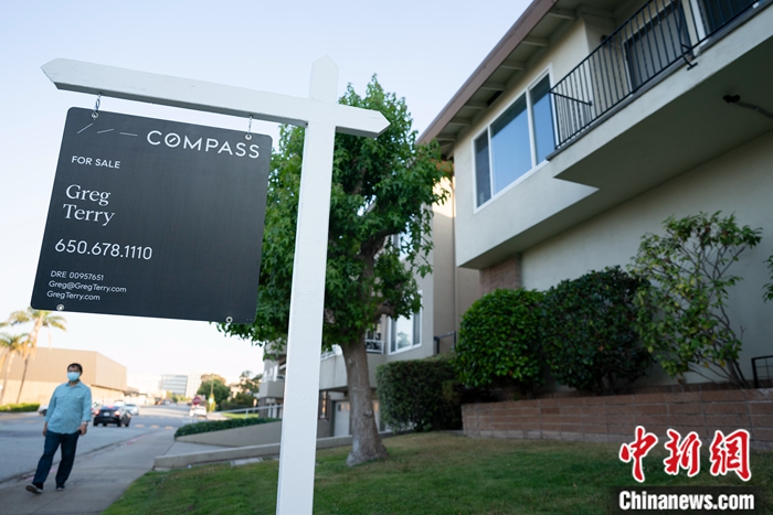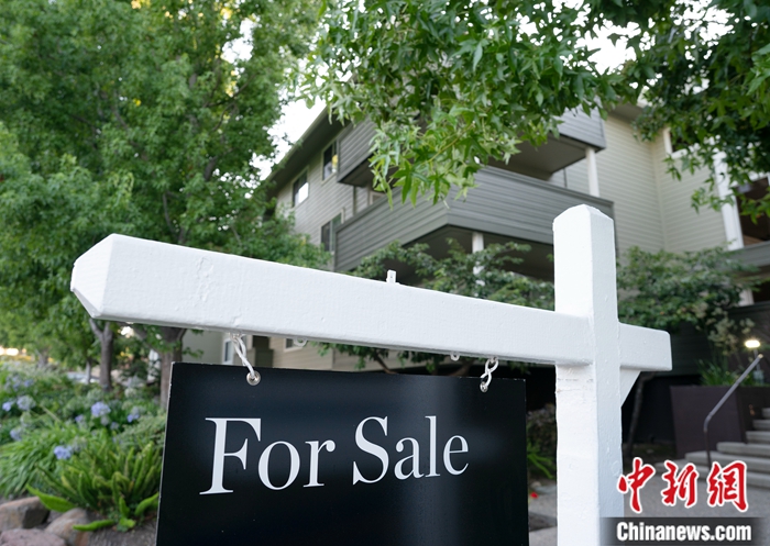 當(dāng)?shù)貢r間8月22日,美國加州圣馬特奧縣一處公寓前掛出售房廣告。中新社記者 劉關(guān)關(guān) 攝