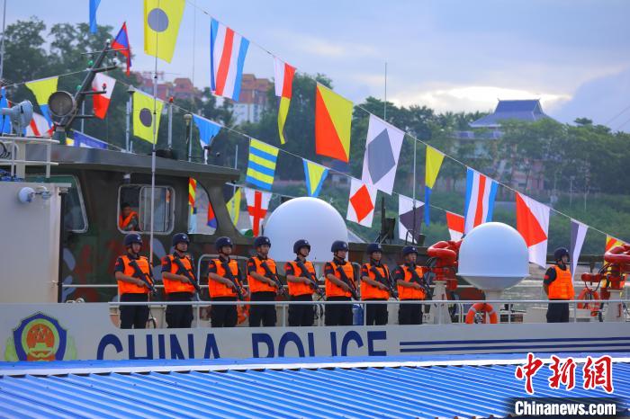 8月22日9時,第132次中老緬泰湄公河聯(lián)合巡邏執(zhí)法行動正式啟動。圖為聯(lián)合巡邏執(zhí)法編隊從中國西雙版納景哈警務(wù)碼頭啟航?!?云南省公安廳 供圖)