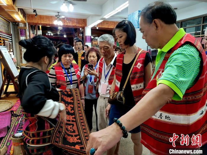 臺(tái)北市商業(yè)總會(huì)一行在海南檳榔谷景區(qū)觀看黎錦作品。 王曉斌 攝