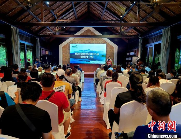保亭縣向來(lái)訪臺(tái)灣同胞介紹當(dāng)?shù)亻_(kāi)發(fā)投資項(xiàng)目?!⊥鯐员?攝