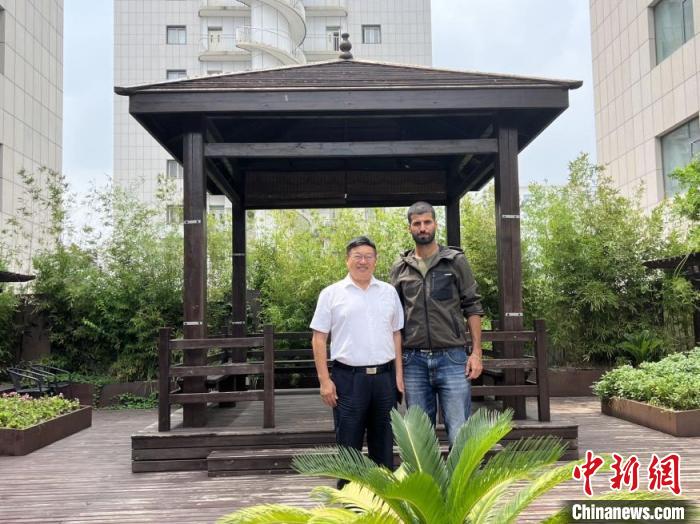 8月2日,在世界針灸學(xué)會聯(lián)合會(簡稱世界針聯(lián))北京總部,海德·阿拉維(右)向世界針聯(lián)主席劉保延介紹工作進(jìn)展?!?天津大學(xué)供圖)