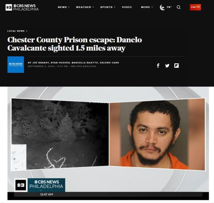 當(dāng)?shù)貢r間9月1日,切斯特縣地方檢察官表示,卡瓦爾坎特被認為正試圖向南逃亡,但目前沒有證據(jù)表明他已經(jīng)離開了附近區(qū)域,或正受到他人幫助。