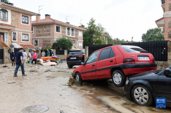 9月4日,居民在西班牙馬德里比利亞曼塔鎮(zhèn)清理淤泥。新華社發(fā)(古斯塔沃·巴連特?cái)z)