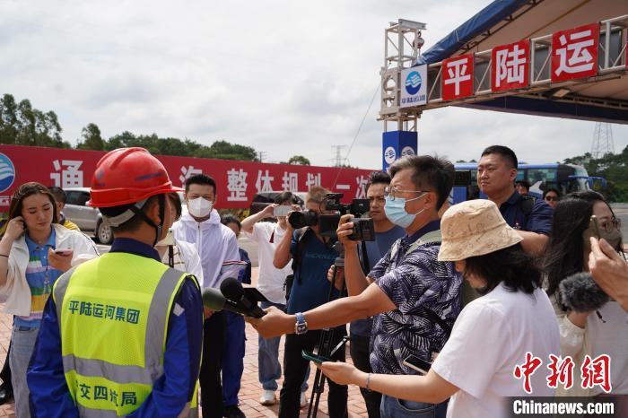 9月4日,兩岸媒體人走進位于廣西欽州的平陸運河青年樞紐施工現(xiàn)場。中新社記者 張楊彬 攝