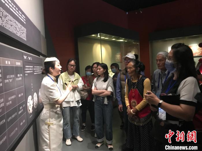 9月3日,臺灣少數(shù)民族參訪團在內(nèi)蒙古博物院參觀?!≈行律缬浾?陳建新 攝