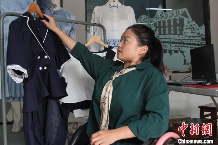 9月7日,成都紡織高等??茖W(xué)校內(nèi),“輪椅女孩”張曉麗展示設(shè)計(jì)的無障礙服裝。王利文 攝