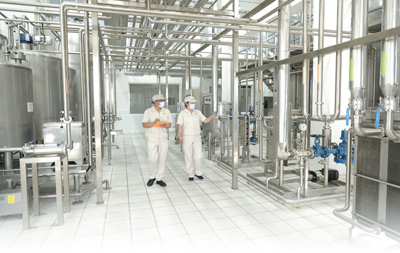 “生產(chǎn)設(shè)備來自中國和德國,當時用了40多節(jié)車廂才把設(shè)備都運到這里,組成自動化全封閉生產(chǎn)線?!睏罱苤钢喙S大門不到百米的鐵軌說,如今,公司年產(chǎn)駱駝奶粉480噸。