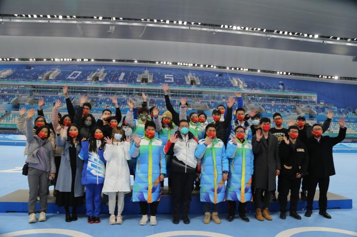 北京大學(xué)體育教研部臺(tái)籍教師陳文成組建的臺(tái)胞志愿者服務(wù)隊(duì)在北京冬奧會(huì)上合影。 本人供圖