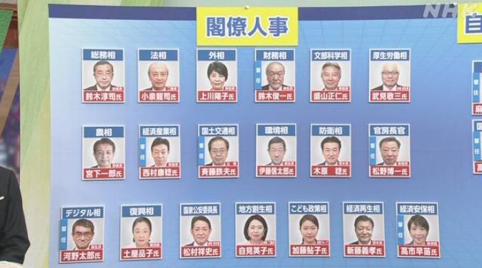 日本新一屆內閣人員名單。圖片來源:日本放送協(xié)會(NHK)報道截圖