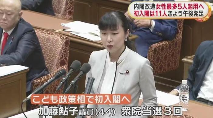 首次入閣的兒童政策擔當大臣加藤鲇子。圖片來源:日本富士電視臺視頻截圖