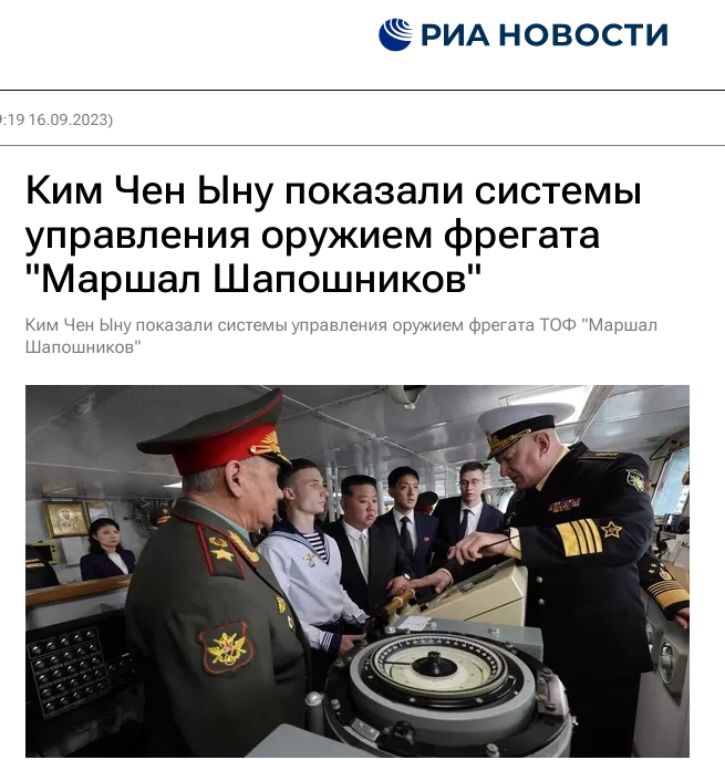 隨后,金正恩與紹伊古一行登上位于符拉迪沃斯托克的俄太平洋艦隊“沙波什尼科夫元帥”號護衛(wèi)艦,參觀了護衛(wèi)艦的導(dǎo)彈系統(tǒng)和火炮裝置。