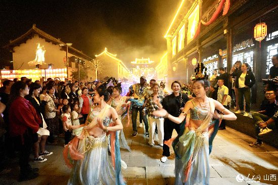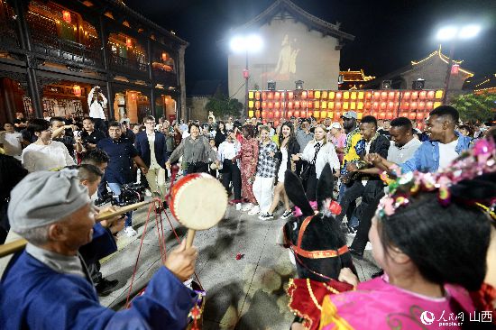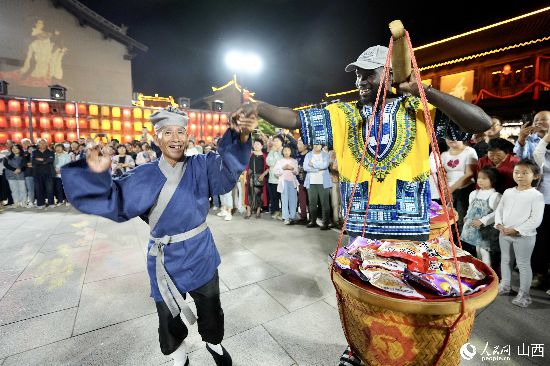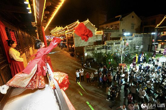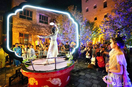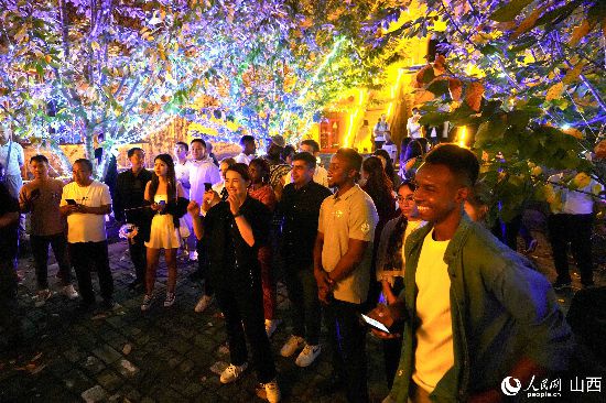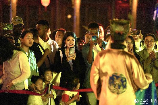 眼花繚亂的民俗表演,沉浸式的古城巡游,絢爛的城樓燈光秀,陶醉的狂歡……9月15日夜晚,在即將結(jié)束山西之行的前夜,2023“漢字緣”國(guó)際故事大會(huì)決賽的選手們夜游山西省晉城市陽(yáng)城縣郭峪古城,于燈火闌珊處感受古城中的人間煙火。(人民網(wǎng) 盧鵬宇攝)