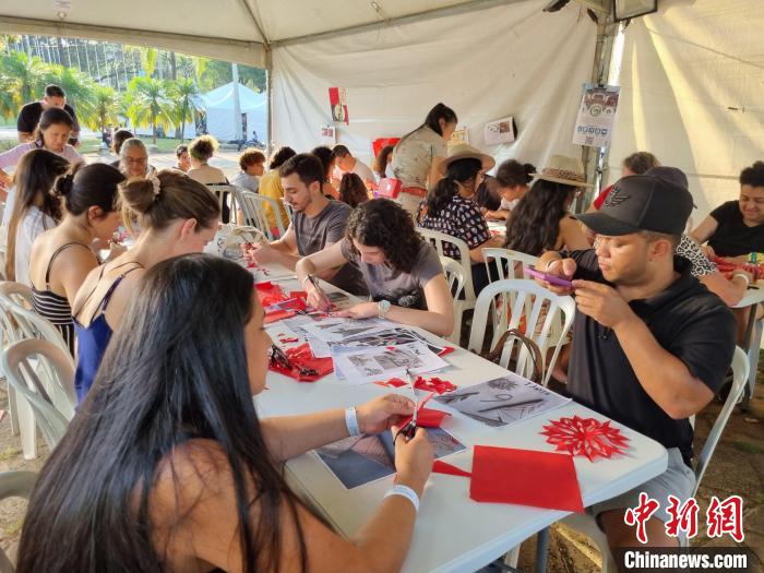 當?shù)貢r間9月16日,坎皮納斯市民在當?shù)仄咸蜒拦珗@體驗中國剪紙、書法、制作燈籠等文化活動??财ぜ{斯大學孔院供圖