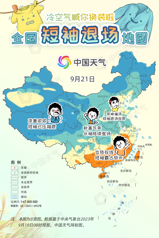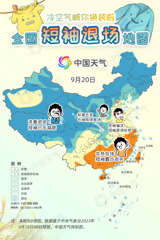 中國天氣網(wǎng)訊 進(jìn)入9月中旬,冷空氣變“勞模”頻繁來襲,西北、東北大部都已邁入秋天門檻,但華北一帶今年秋天似乎來得有點兒晚,南方地區(qū)白天甚至熱到還要開空調(diào),不少網(wǎng)友喊話“秋高氣爽何時能來?”今起三天(9月19日至21日),受冷空氣和降雨共同影響,長江以北大部地區(qū)將陸續(xù)迎來降溫,開啟秋日初體驗。中國天氣網(wǎng)特別推出全國短袖退場地圖,看看哪里可以安排秋天的第一件長袖。