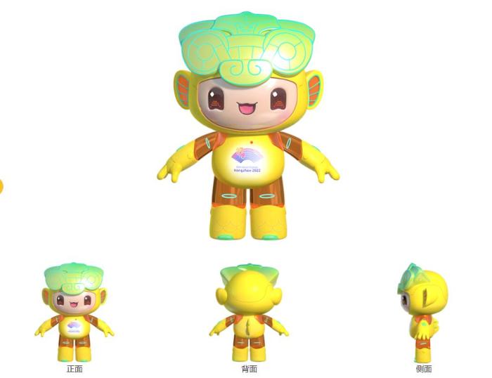 “琮琮”的設(shè)計靈感源自良渚玉琮,代表世界遺產(chǎn)良渚古城遺址。它全身以源自大地、象征豐收的黃色為主色調(diào),頭部裝飾的紋樣取自良渚文化的標(biāo)志性符號“神人獸面紋”,意寓“不畏艱險、超越自我”?!扮眻詮?qiáng)剛毅、敦厚善良、體魄強(qiáng)健、熱情奔放,擅長力量型與傳統(tǒng)項目,如武術(shù)、舉重等。