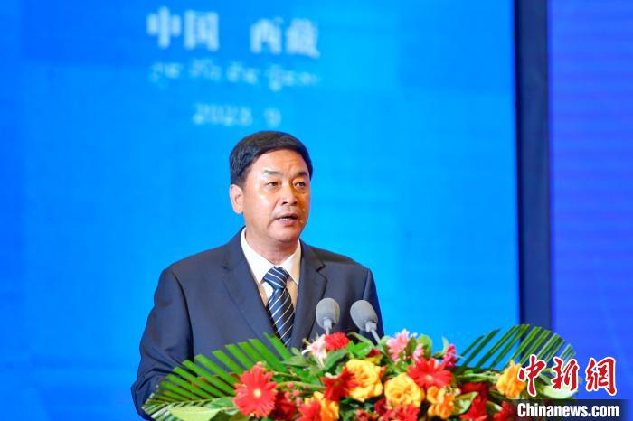 圖為西藏自治區(qū)人民政府主席嚴金海主持開幕式?!∝暩聛硭?攝