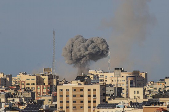 這是10月7日在加沙城拍攝的以色列軍隊空襲地面建筑造成的濃煙。新華社發(fā)(里澤克·阿卜杜勒賈瓦德攝)