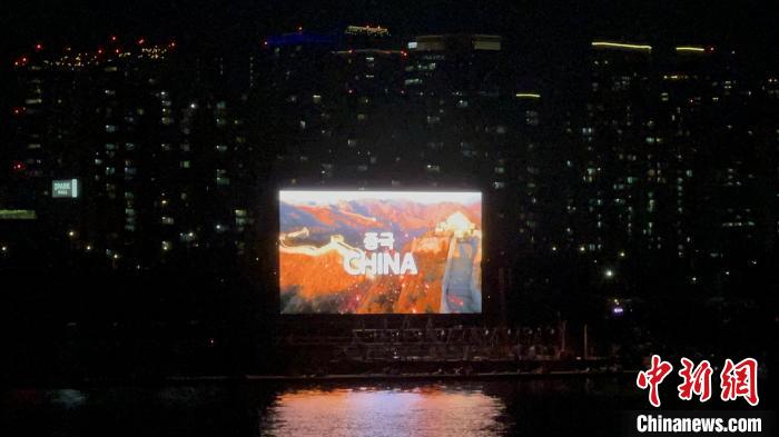 圖為慶典中播放中國(guó)主題宣傳片。中新社記者 劉旭 攝