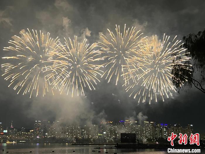 19時(shí)20分許,煙花隨著主持人的倒計(jì)時(shí)口令相繼綻放,拉開煙花秀表演的序幕。