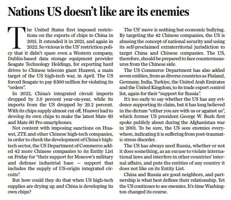 原標(biāo)題:Nations US doesn’t like are its enemies