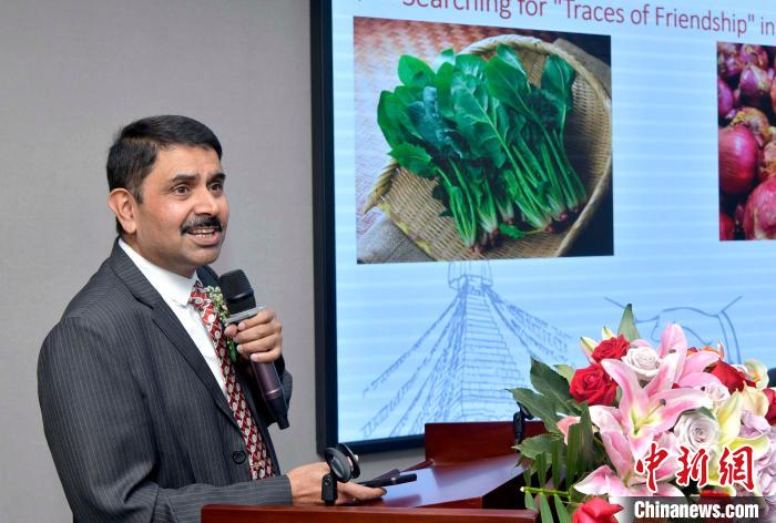 說著一口流利普通話的尼泊爾研修班學員代表、尼中文教協(xié)會秘書長蒂利普·普拉薩德·阿查利亞就“尼中關系的不同維度”發(fā)言。他從飲食、建筑、文化、歷史等多方面闡述尼中兩國友好的悠久歷史。他說:“兩國的關系具有更廣闊、更親近、更自然、更加充滿活力的特點,應該成為‘親戚’。”