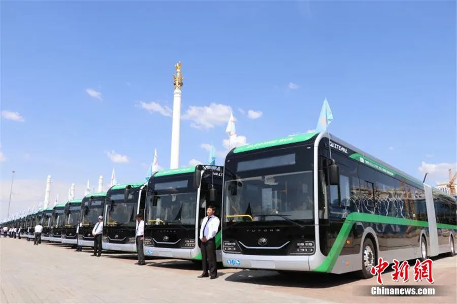 2023年7月4日,來自中國(guó)的宇通客車批量交付儀式在哈薩克斯坦首都阿斯塔納獨(dú)立廣場(chǎng)舉行。張碩 攝