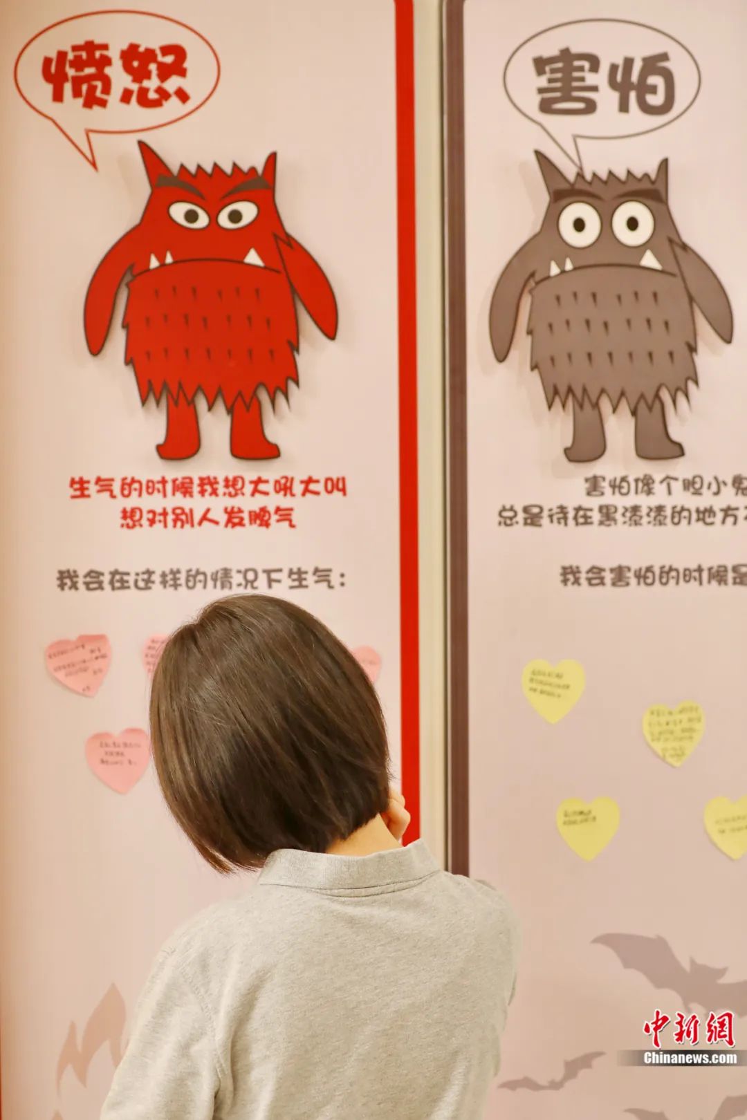 2023年5月14日,在浙江省嘉興市兒童青少年心理健康服務(wù)總站,學生在“情緒墻”上表達心聲。金鵬 攝