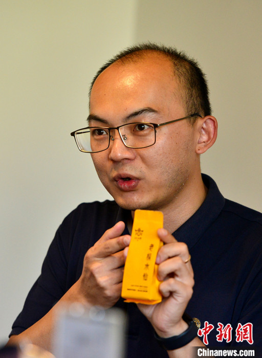 圖為9月19日,曾冠穎在“101公館”展示自己在漳州長(zhǎng)泰茶山生產(chǎn)的臺(tái)灣茶。 中新社記者 張斌 攝