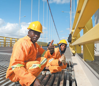 據(jù)介紹,馬普托大橋項(xiàng)目在建設(shè)過(guò)程中踐行屬地化經(jīng)營(yíng)理念,建設(shè)最高峰期雇傭當(dāng)?shù)貑T工超過(guò)3000人,焊工、車工、鋼筋工、機(jī)械操作手等一大批專業(yè)技術(shù)人員通過(guò)大橋項(xiàng)目提升了職業(yè)技能?!霸诖髽蝽?xiàng)目上學(xué)到的一技之長(zhǎng)幫我找到了新的工作?!蹦1瓤饲嗄攴茽柕缕湛ㄕ劶霸隈R普托大橋項(xiàng)目工作的收獲,臉上洋溢著幸福的笑容。