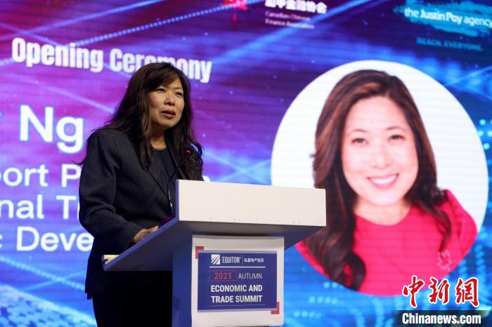 當(dāng)?shù)貢r間10月11日,加拿大多倫多,加拿大出口促進、國際貿(mào)易和經(jīng)濟發(fā)展部長伍鳳儀在多倫多出席當(dāng)日開幕的2023秋季經(jīng)貿(mào)論壇時表示,加政府正繼續(xù)在全球各地商談、拓展貿(mào)易協(xié)議。記者 余瑞冬 攝