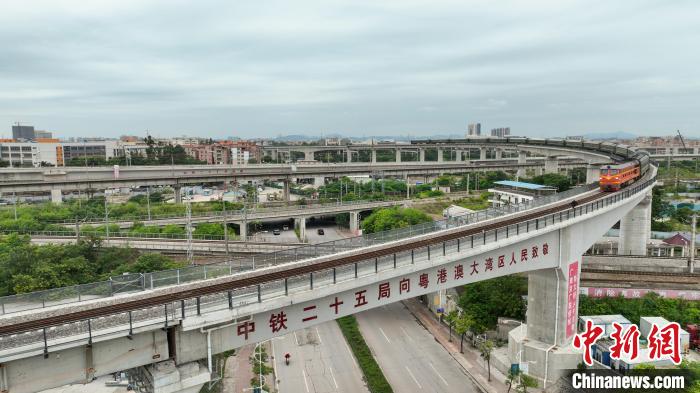 此次開通的江大聯(lián)絡線由廣東鐵投集團所屬廣湛鐵路公司出資建設、中國鐵路設計集團EPC總承包、中鐵二十五局承建。江大聯(lián)絡線全長約3.42公里,設計時速60公里,全線包含8處特殊結構,上跨廣珠鐵路、京廣三線、京廣上行線以及廣清高速公路,并下穿武廣高鐵,沿線地處巖溶發(fā)育區(qū)域,且臨近既有營業(yè)線施工長達2.7公里,涉及8個站場電務設備改造,施工環(huán)境復雜,施工難度、安全壓力巨大。