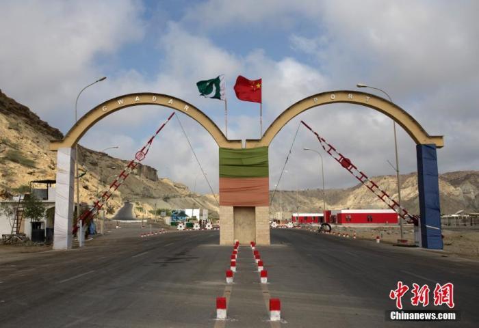 資料圖:瓜爾達(dá)港出入口的拱門(mén)。瓜爾達(dá)港是阿拉伯海沿岸的一座天然不凍良港,也是中巴經(jīng)濟(jì)走廊的南端起點(diǎn)。中新社記者 劉關(guān)關(guān) 攝