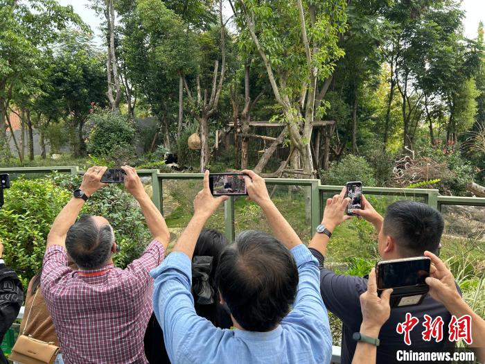 10月15日,臺胞社團領(lǐng)袖走進成都大熊貓繁育研究基地。王鵬 攝