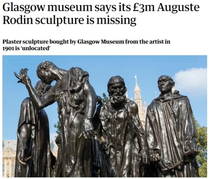 格拉斯哥博物館主管熱羅姆·勒·布萊稱,雕像丟失事件“令人遺憾”。他估計(jì),該雕像如今的價值約為300萬英鎊。