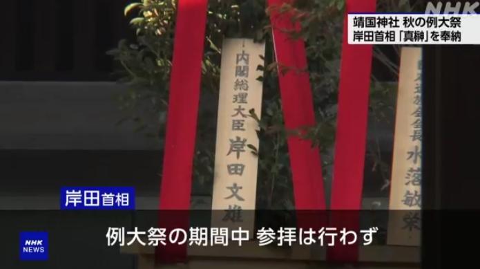 據(jù)報(bào)道,岸田在2021年10月就任首相一職之前從未向靖國神社供奉過“真榊”祭品,就任后便沿襲前首相安倍晉三的做法,已多次供奉。