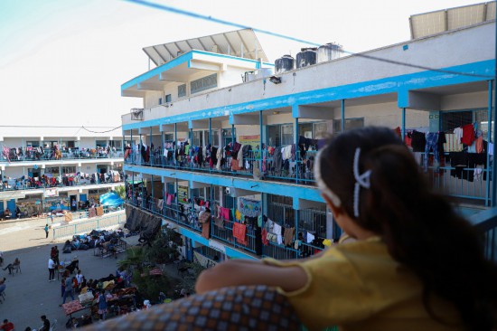 10月15日,在加沙地帶南部城市汗尤尼斯,流離失所者暫時居住在當(dāng)?shù)匾凰鶎W(xué)校里。新華社發(fā)(里澤克·阿卜杜勒賈瓦德攝)
