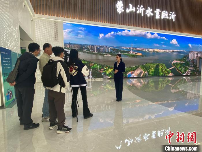 在臨沂市規(guī)劃展覽館,記者們了解了臨沂概況、發(fā)展成就和發(fā)展規(guī)劃藍(lán)圖。山東省委臺港澳辦供圖