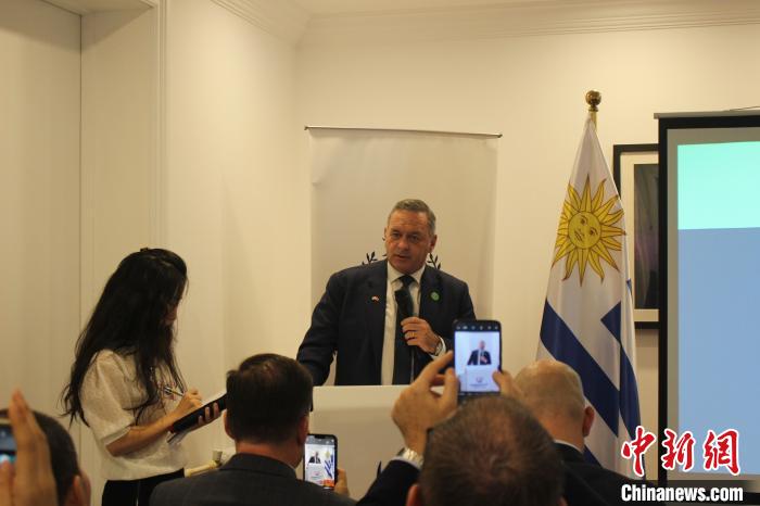 烏拉圭駐華大使館17日下午舉行新聞發(fā)布會。蘇婧欣攝