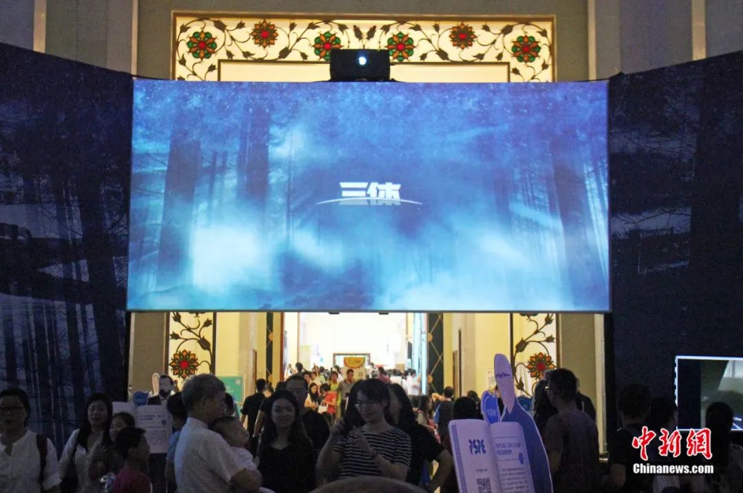2016年9月17日,上海展覽中心的科普產(chǎn)品博覽會上,劉慈欣科幻小說《三體》的主題展館受到科幻迷關注。陳玉宇 攝