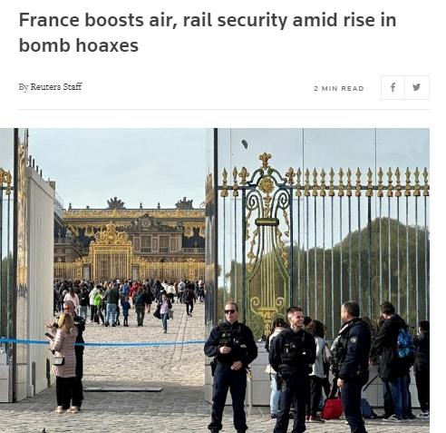 當?shù)貢r間19日,法國14個機場收到炸彈威脅,至少9個機場進行疏散。凡爾賽宮也在不到一周的時間內(nèi)第4次進行疏散。