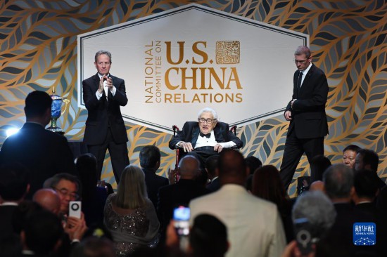 10月24日,美國前國務卿基辛格(中)出席在紐約舉行的美中關(guān)系全國委員會年度頒獎晚宴。新華社記者李睿攝