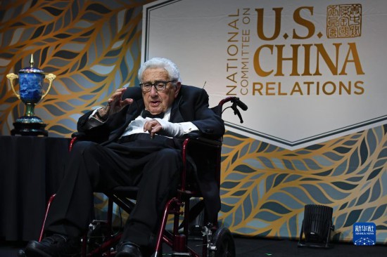 10月24日,美國前國務卿基辛格在紐約舉行的美中關(guān)系全國委員會年度頒獎晚宴上講話。新華社記者李睿攝