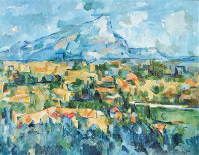 由此,塞尚、梵高、高更等藝術(shù)家的繪畫語言逐漸展現(xiàn)出不同于印象派的風(fēng)格。塞尚在繪畫中拋棄了明暗和透視,尋求色彩與形狀的互相牽制,使畫面結(jié)構(gòu)更加穩(wěn)定嚴(yán)謹(jǐn),制造出物與物之間的空間張力。他的油畫作品《圣維克多山》(見圖,曲音供圖)用冷暖色搭配勾勒出許多幾何形狀的色塊,形如房屋、狀似樹木,以相互交疊的視覺呈現(xiàn)替代了透視效果,暗示出遠近和前后關(guān)系,令畫面中的山峰無論從哪個角度觀看都顯得雄偉壯麗。