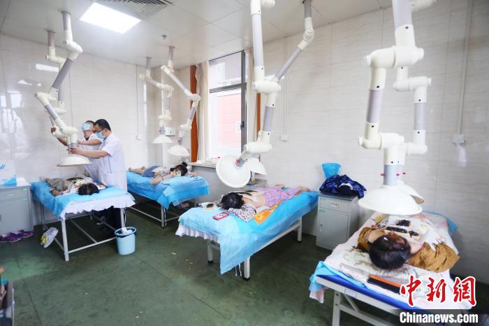 2021年8月19日,甘肅中醫(yī)藥大學(xué)附屬醫(yī)院鄭氏針灸科室內(nèi),醫(yī)師為患者做敦煌特色灸。(資料圖)高展 攝