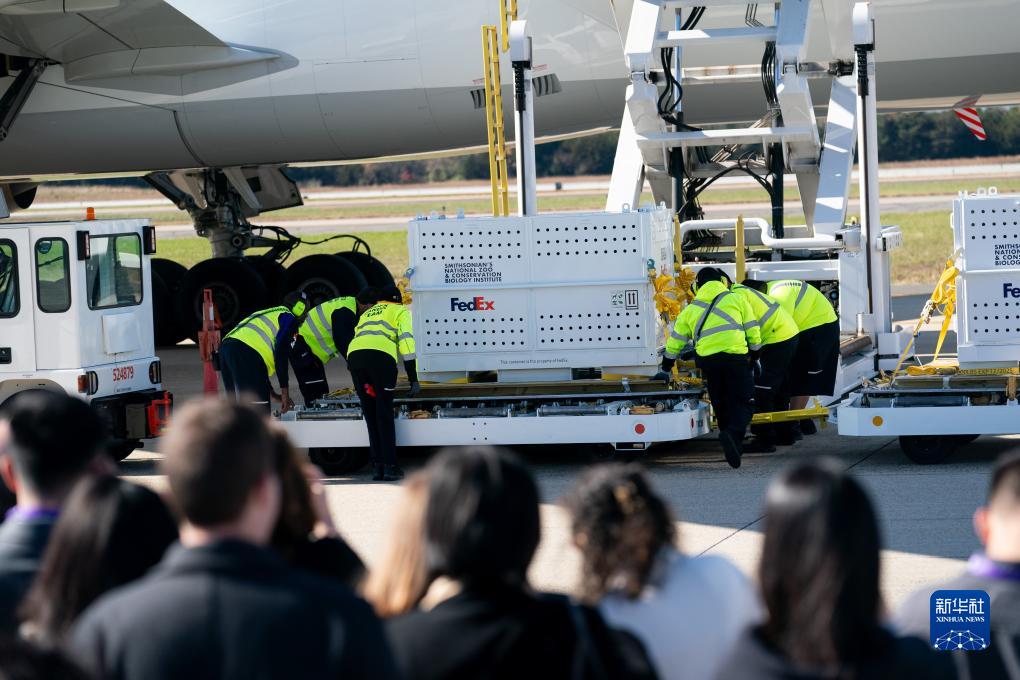 當(dāng)天上午,華盛頓史密森學(xué)會(huì)國家動(dòng)物園工作人員將三只裝有大熊貓的特制“旅行包廂”、220磅(約合100公斤)竹子、飲用水及相關(guān)物資運(yùn)上卡車。隨后,載有“美香”“添添”和“小奇跡”的車隊(duì)駛離動(dòng)物園,前往華盛頓杜勒斯國際機(jī)場(chǎng)。