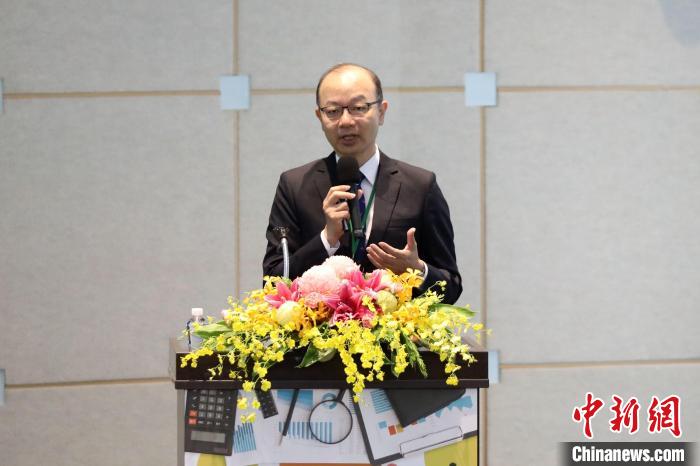 臺(tái)灣經(jīng)濟(jì)研究院8日在臺(tái)北舉辦2024年景氣展望與產(chǎn)業(yè)趨勢研討會(huì),臺(tái)經(jīng)院景氣預(yù)測中心主任孫明德發(fā)言。 中新社記者 陳小愿 攝