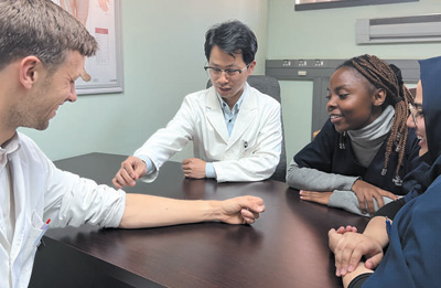 多年來,以中醫(yī)院、中醫(yī)診所、研究機(jī)構(gòu)等為載體,中醫(yī)藥學(xué)走出國門、走向世界。圖為南非約翰內(nèi)斯堡大學(xué)針灸專業(yè)學(xué)生在非洲中醫(yī)及針灸中心參加中醫(yī)臨床實踐課程。