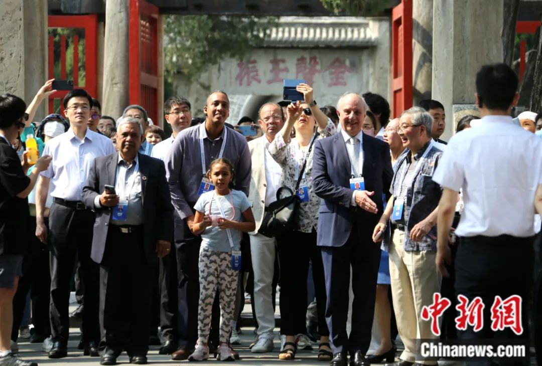 2023年6月27日,正在山東曲阜參加世界互聯(lián)網(wǎng)大會數(shù)字文明尼山對話的中外嘉賓,來到孔廟、孔府沉浸式體驗中華傳統(tǒng)文化。沙見龍 攝